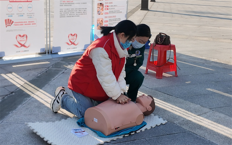 急診科醫(yī)護(hù)人員還借助模擬人進(jìn)行了心肺復(fù)蘇實(shí)操教學(xué),從按壓部位、力度到頻率,細(xì)致拆解每一個(gè)步驟,幫助市民掌握應(yīng)急救護(hù)技能。
