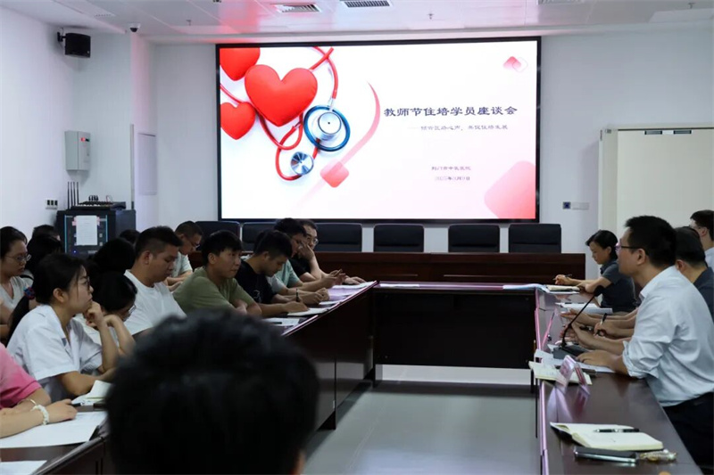 9月9日下午,荊門市中醫(yī)醫(yī)院在康保樓會議室召開以“傾聽醫(yī)路心聲,共促住培發(fā)展”為主題的教師節(jié)住培工作懇談會。會議由副院長楊文濤主持,院長涂敏率科研教學科、醫(yī)務(wù)科、人事科、財務(wù)科、總務(wù)科、績效管理辦公室等職能部門負責人,與教師代表、住培學員齊聚一堂,圍繞醫(yī)學教育及住院醫(yī)師規(guī)范化培訓(住培)工作進行深入交流。